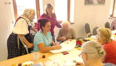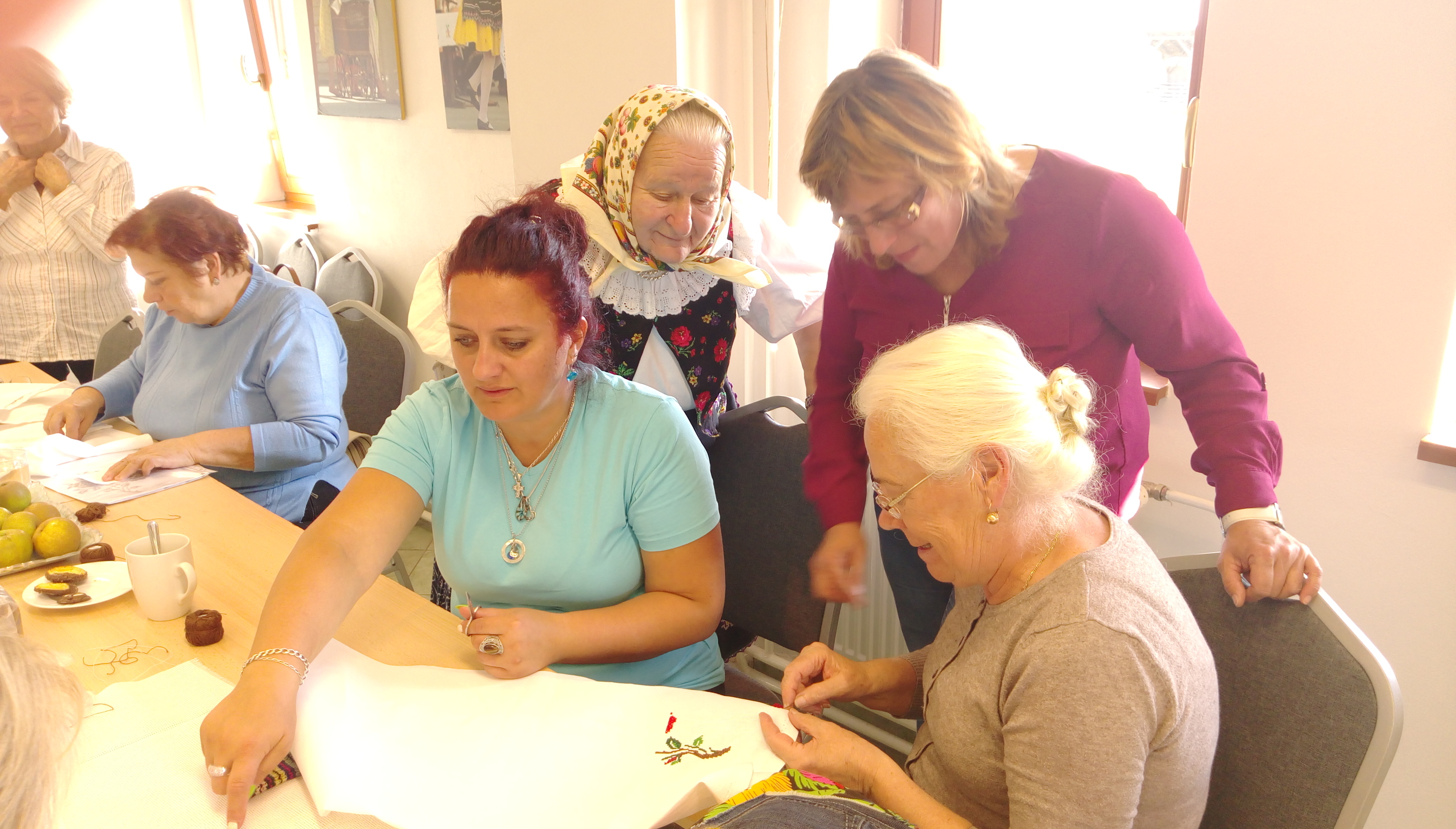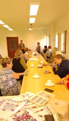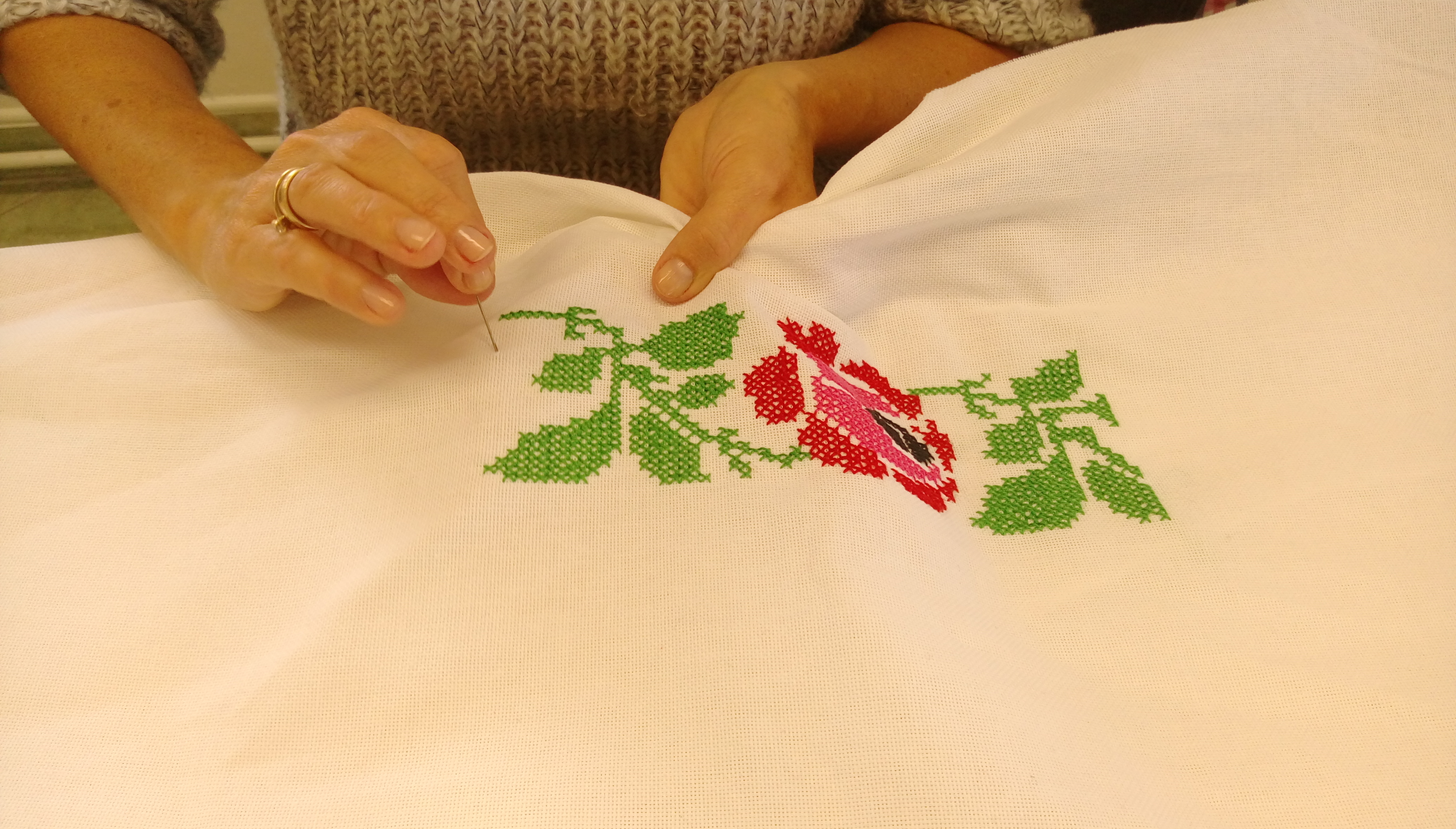 praktyczne zajęcia z wyszywania haftem krzyżykowym. Warsztaty odbyły się w ramach