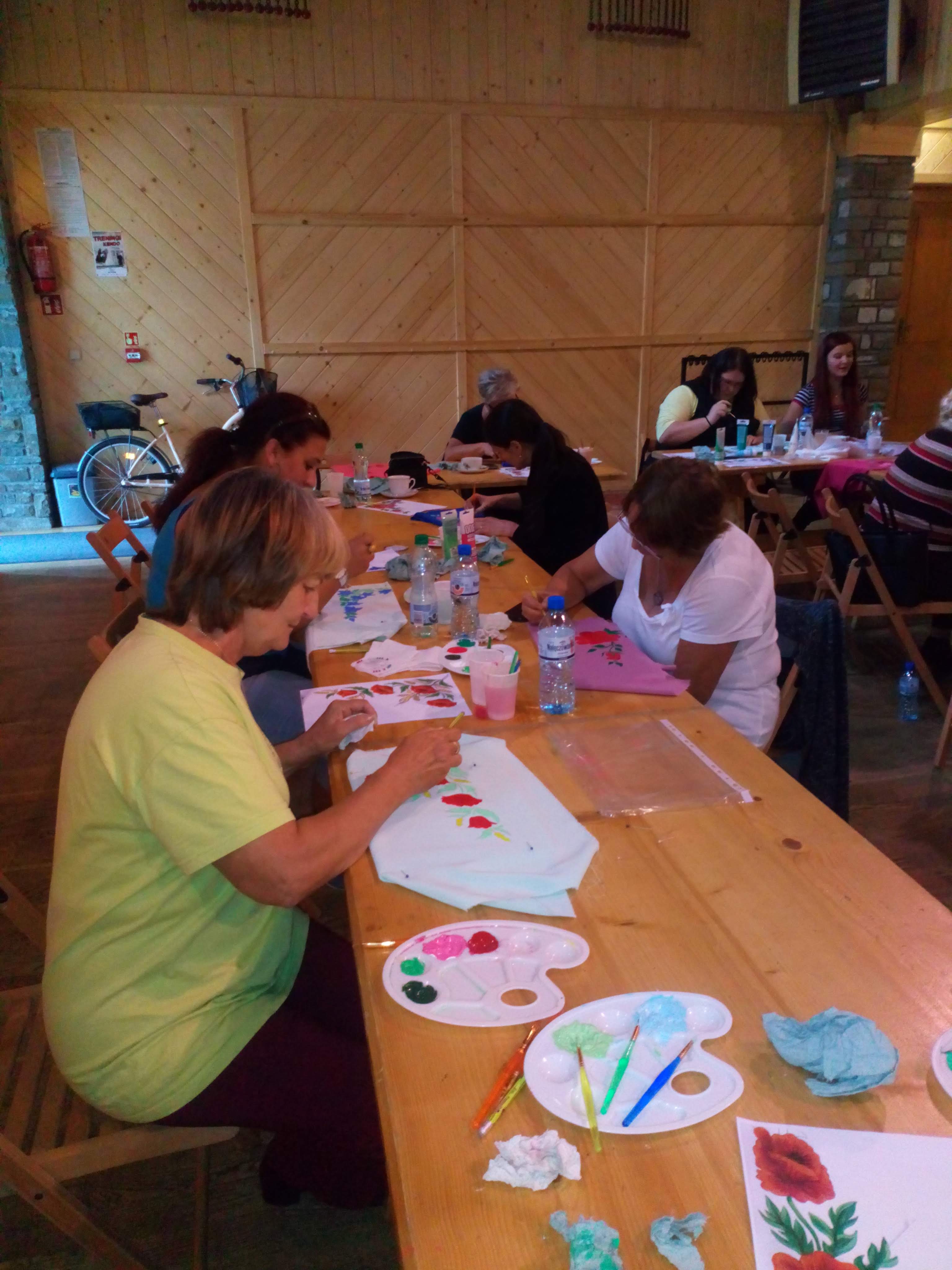 W dniach 6-7-8 września 2018 roku odbyły się warsztaty polsko-słowackie z malarstwa na tkaninie w Gminnym Ośrodku Kultury w Poroninie. Warsztaty odbyły się w ramach mikroprojektu pn. „Gmina Poronin i Východná nie pozwolą zaginąć ludowym rzemiosłom” w ramach Programu Współpracy Transgranicznej Interreg V-A Polska – Słowacja 2014-2020.