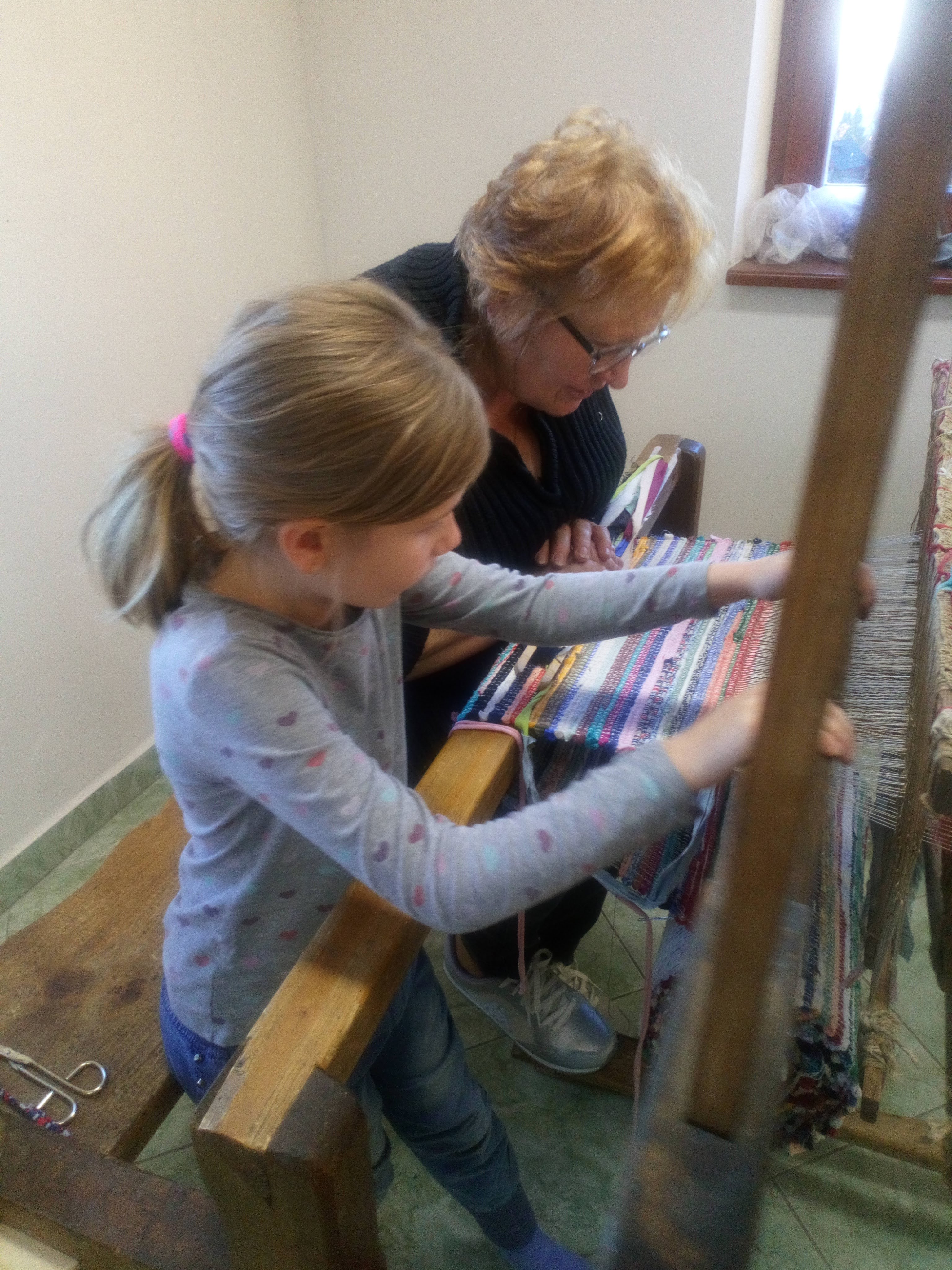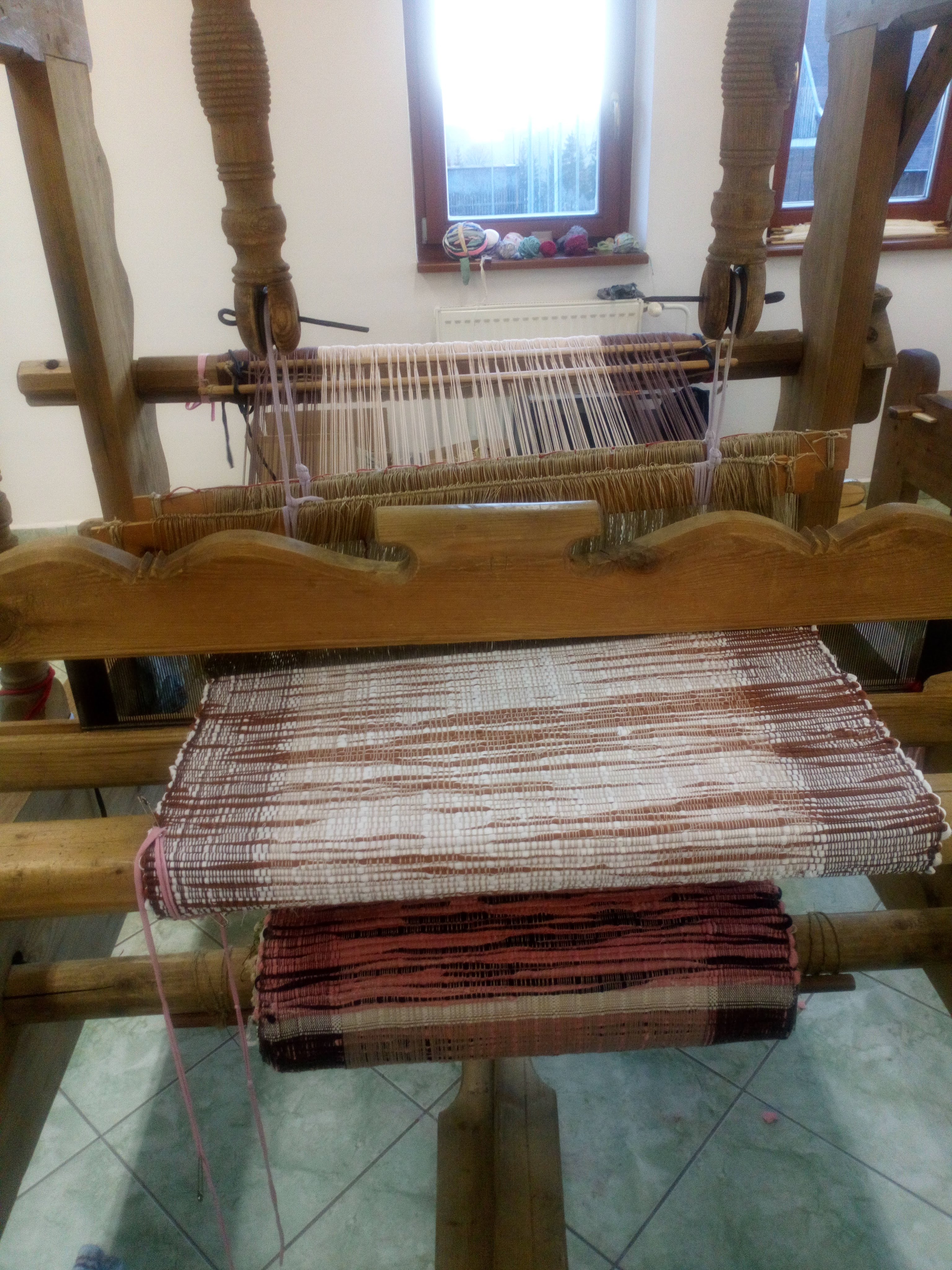 praktyczne zajęcia z tkania dywanów i z szycia strojów ludowych. Warsztaty