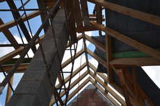 Powstały już dwie kondygnacje. Aktualnie prowadzone są prace na poddaszu oraz te związane z budową konstrukcji dachu i kominów dymowych i wentylacyjnych. Budowane są także nowe piłkochwyty, które w przyszłości będą służyć bezpieczeństwu dzieci i młodzież korzystających z boiska.