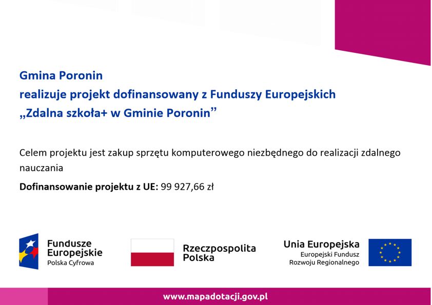 Gminę Poronin wsparcie finansowe w wysokości 99927,66 zł zostało