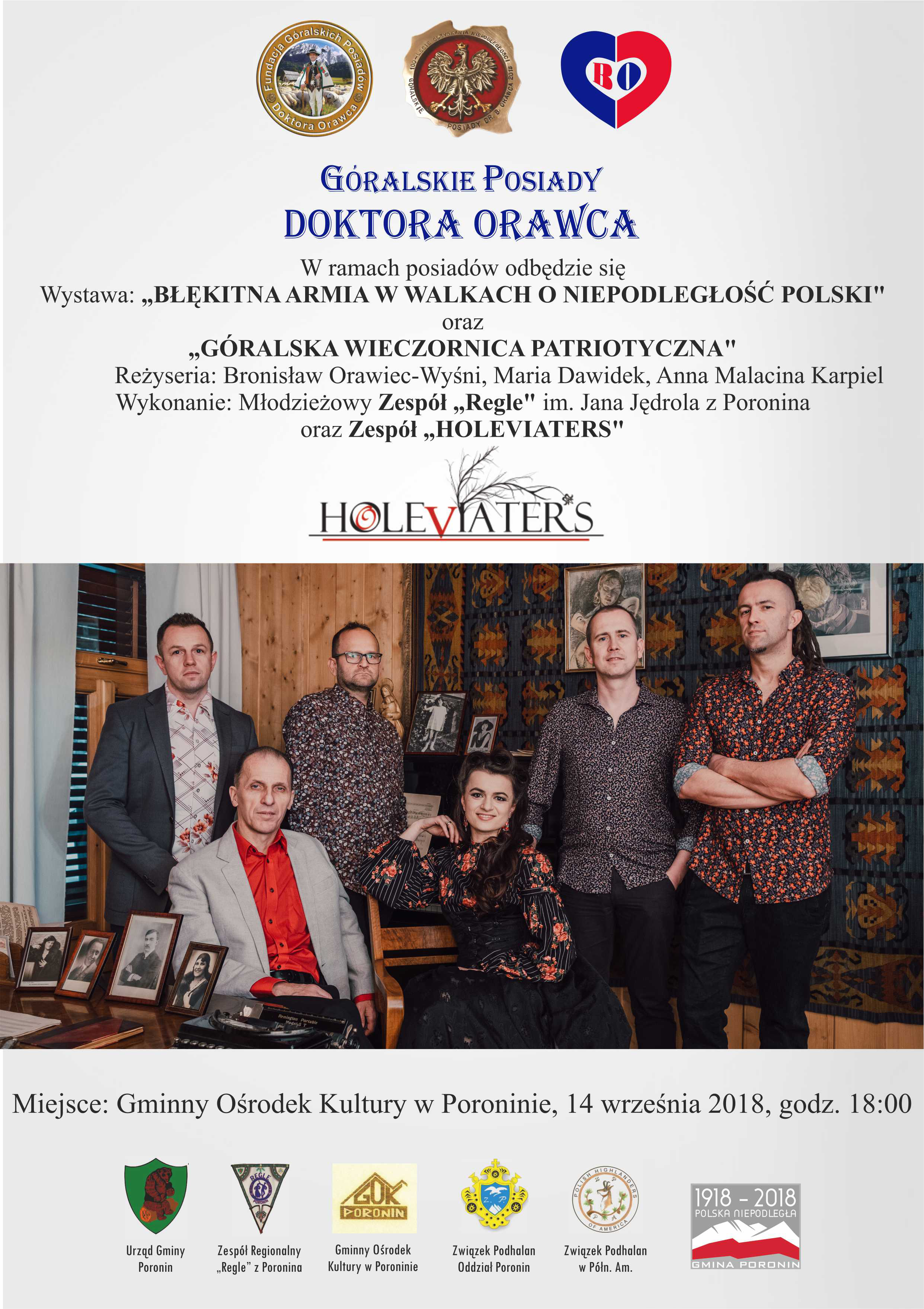 W ramach XXV Góralskich Posiadów dr. Orawca została zorganizowana Góralska Wieczornica Patriotyczna w reżyserii: dr. Bronisława Orawca-Wyśniego, Marii Dawidek oraz Anny Malaciny Karpiel. Wieczornica składała się z odśpiewania hymnu „Jeszcze Polska nie zginęła”, wystawy pt. „Błękitna Armia w walkach o niepodległość Polski”, koncertu Zespołu „Holeviaters”, występu Młodzieżowego Zespołu „Regle” im. Jana Jędrola, recytacji patriotycznych wierszy autorstwa F. Łojasa-Kośli oraz wspólnego śpiewu wybranych pieśni patriotycznych. Wiersze recytowali Ewelina Rzadkosz oraz Maciej Dziubas.