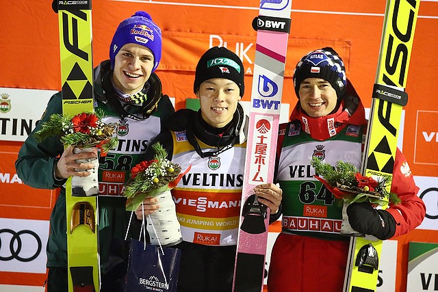 W niedzielę byliśmy świadkami wspaniałego konkursu Pucharu Świata na skoczni HS-142 w Ruce. Najlepsi na świecie skoczkowie latali tego dnia daleko, a bezkonkurencyjny okazał się Ryoyu Kobayashi, który drugim skokiem na odległość 147,5 metra wyrównał aktualny rekord obiektu. Japończyk zdeklasował rywali i o 22 punkty pokonał Andreasa Wellingera z Niemiec. Na najniższym stopniu podium stanął Kamil Stoch, który w niedzielnym konkursie uzyskał 136,5 oraz 144 metry.