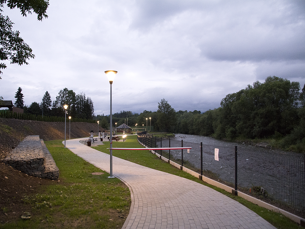 Zakres rzeczowy zadania obejmował wykonanie zagospodarowania terenu znajdującego się przy potoku Poroniec w Poroninie na cele rekreacyjno-turystyczne. W ramach zadania powstał ciąg pieszo – rowerowy, boisko do siatkówki wraz z ogrodzeniem, altana, siłowania zewnętrzna - 10 urządzeń, zamontowano elementy infrastruktury towarzyszącej w tym: ławki, kosze na śmieci, ławostoły, stojaki na rowery, wykonano zewnętrzne palenisko betonowe, zamontowano huśtawki i piaskownicę dla dzieci posadzono drzewa i krzewy. Cały teren został oświetlony. Wartość całkowita realizacji operacji: 729 700,51 zł Kwota dofinansowania: 258 976,05 zł