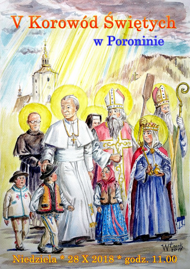 W niedzielę 228 października br. zapraszamy do udziału w Korowodzie Świętych. Dzieci, młodzież i dorośli przychodzą do kościoła przebrani za wybranego świętego lub świętą. Po Mszy Świętej o godz. 11.00 przejdziemy na teren Gminnego Ośrodka Kultury w Poroninie.