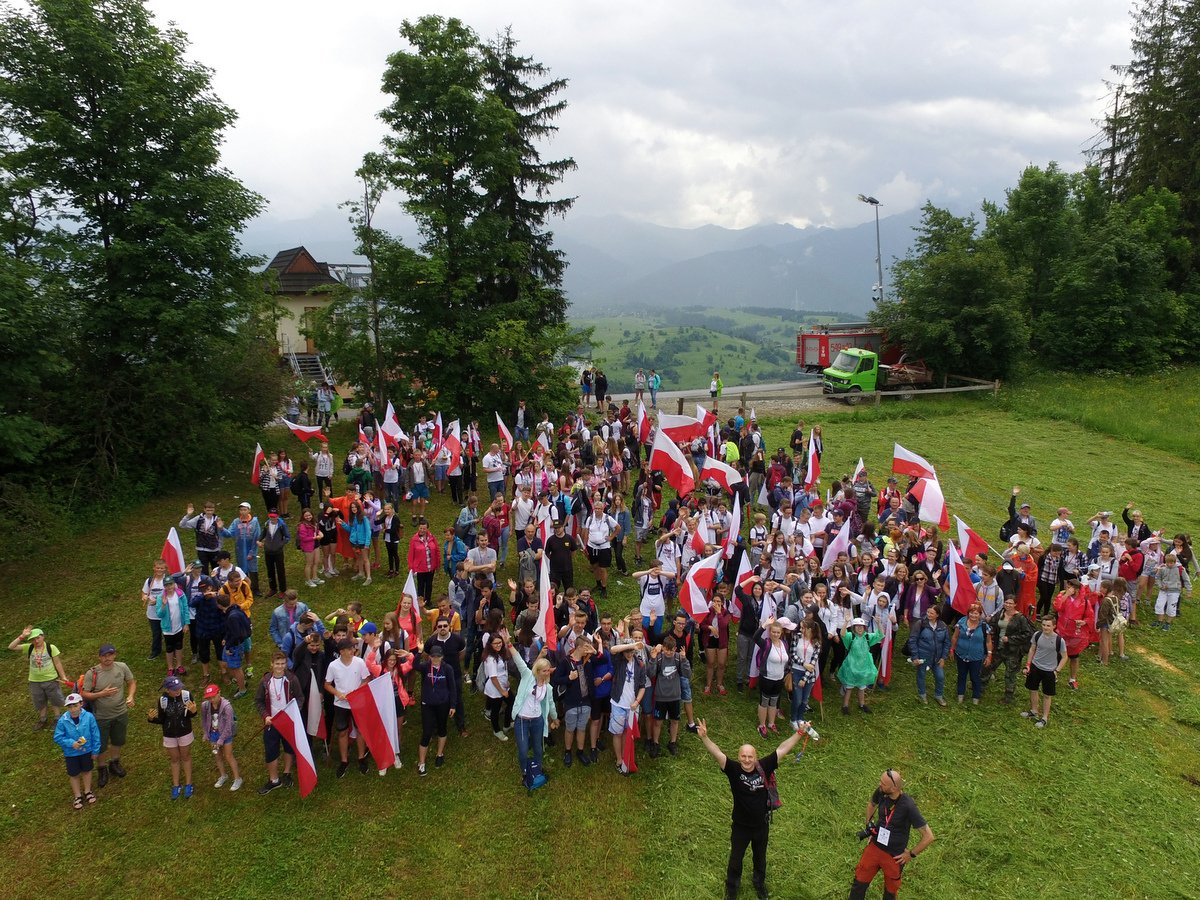 W imieniu organizatorów uczestników rajdu zebranych pod budynkiem „Palace” przywitał Wójt Gminy Poronin Bronisław Stoch, który następnie wraz ze swoim zastępcą Panem Andrzejem Buńdą, ppłk Marcinem Duszą oraz delegacją rodzin złożył wiązankę i znicze pod tablicą upamiętniającą niemieckie ofiary. Kustosz Muzeum „Palace” Pan Jan Jarosz przedstawił historię budynku zwanym „Katownią Podhala”, gdzie w Zakopanem podczas Drugiej Wojny Światowej znajdowała się siedziba Gestapo. Następnie wyruszyliśmy na cmentarz na ulicy Nowotarskiej w Zakopanem na którym znajduje się zbiorowa mogiła i pomnik ofiar Drugiej Wojny Światowej. Po uhonorowaniu tego miejsca udaliśmy się do bazy śmigłowca TOPR, aby wysłuchać prelekcji na temat bezpieczeństwa podczas wycieczek górskich. Następnym punktem rajdu był Ośrodek Narciarsko-Rekreacyjny Harenda w Zakopanem i dzięki uprzejmości władz tej firmy wywieziono nas wyciągiem krzesełkowym na górną stację kolei, gdzie uczestnicy rajdu otrzymali kanapki i napoje. Lekki deszcz nie popsuł nastrojów i wyruszyliśmy Rafaczówkami pod Obelisk Szlaku Papieskiego w Zębie. Dzięki Panu Krzysztofowi Dudzińskiemu podczas przemarszu towarzyszył nam samolot z nowotarskiego aeroklubu, który pilotował Pan Józef Stachoń. Niestety z powodu deszczu nie udało się za samolotem rozwinąć polskiej flagi.