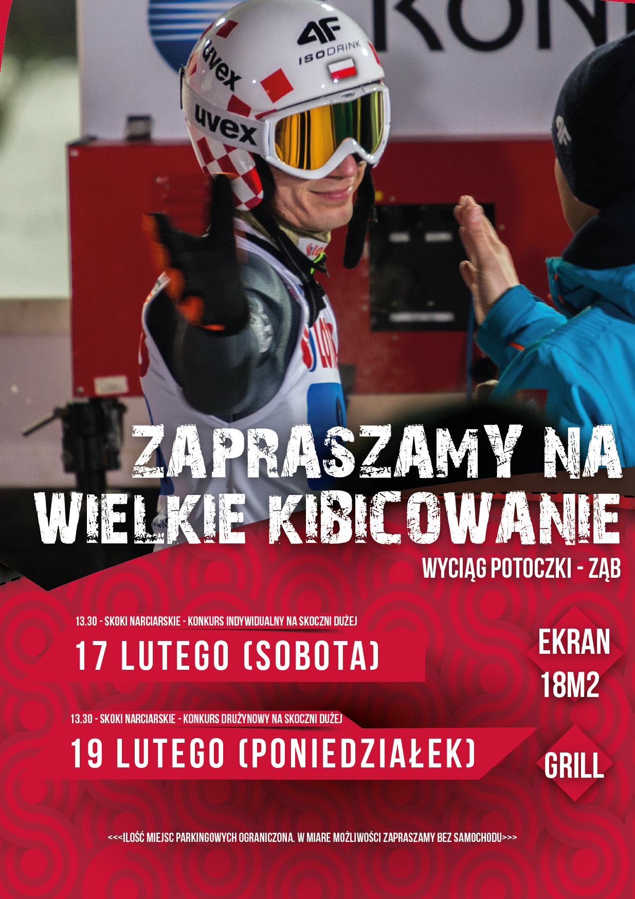 Zapraszamy ponownie do Zębu na wielkie kibicowanie Kamilowi i naszym skoczkom. Tym razem odbędzie się konkurs drużynowy na dużej skoczni! Do zobaczenie w Zębie!
