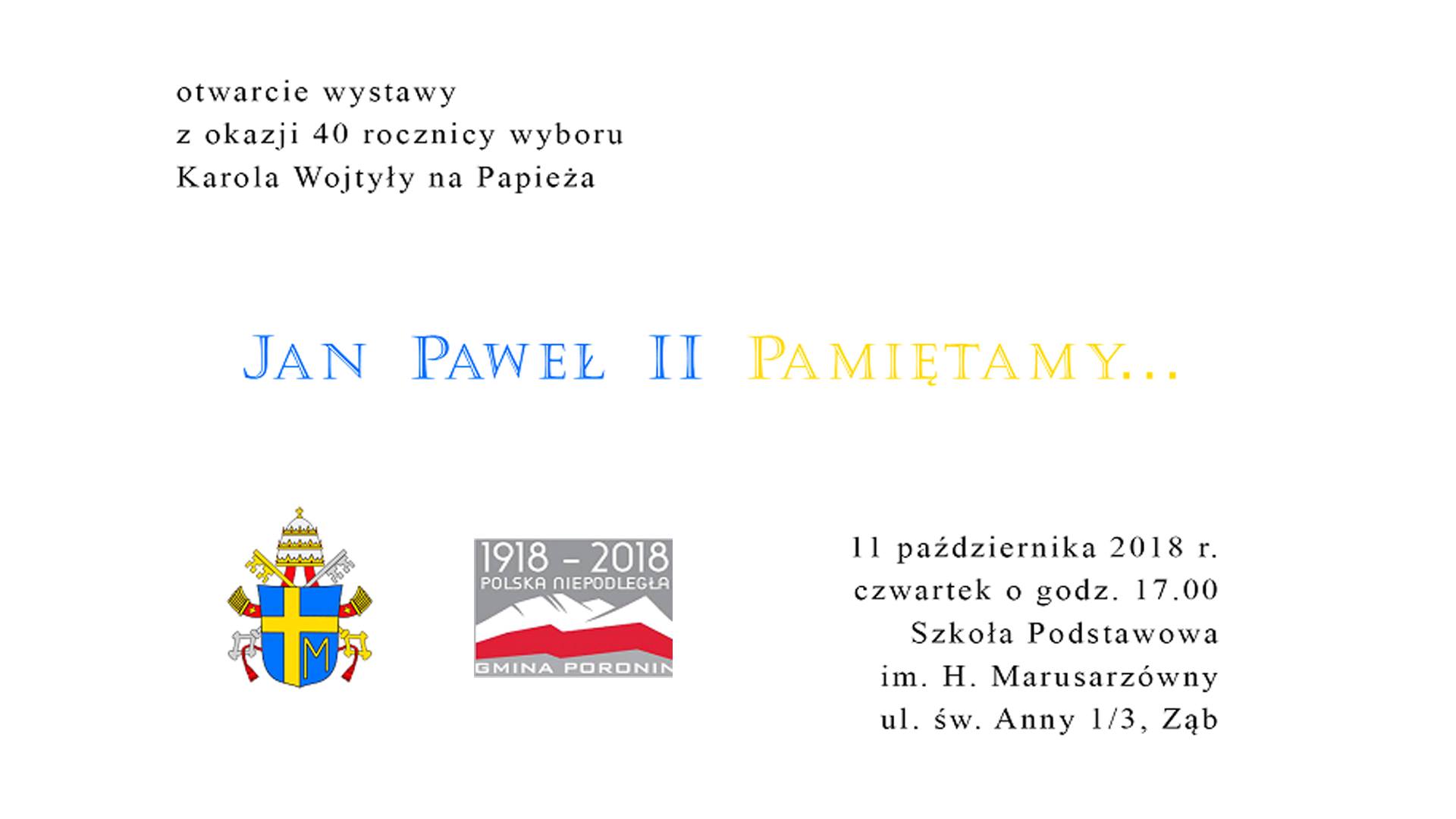 Szkoła Podstawowa im. Heleny Marusarzówny w Zębie zaprasza na wystawę z okazji 40 rocznicy wyboru Karola Wojtyły na Papieża -