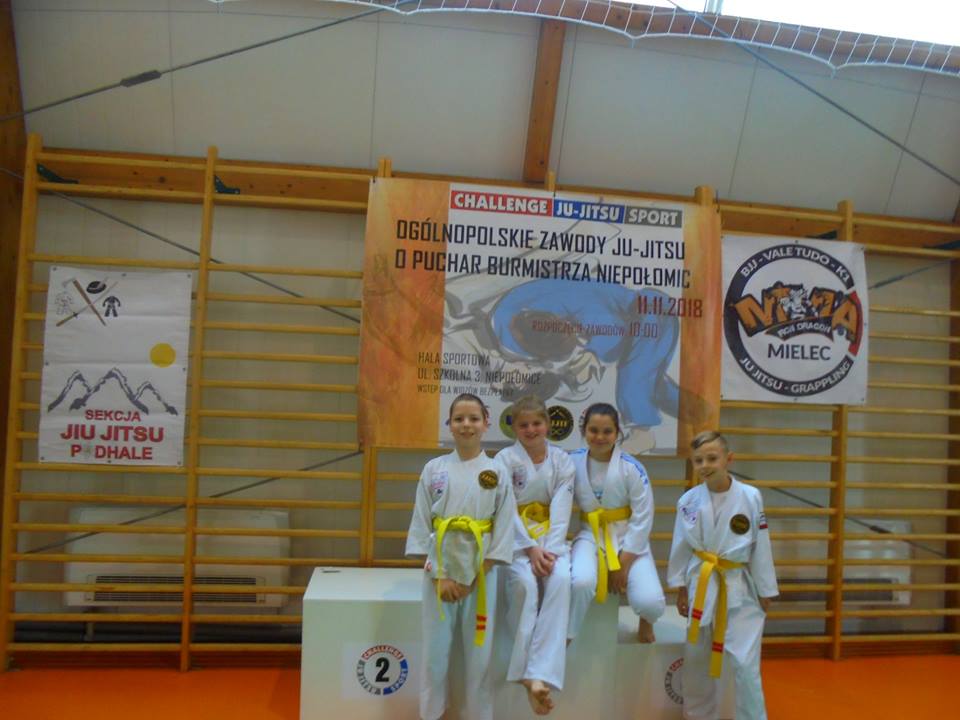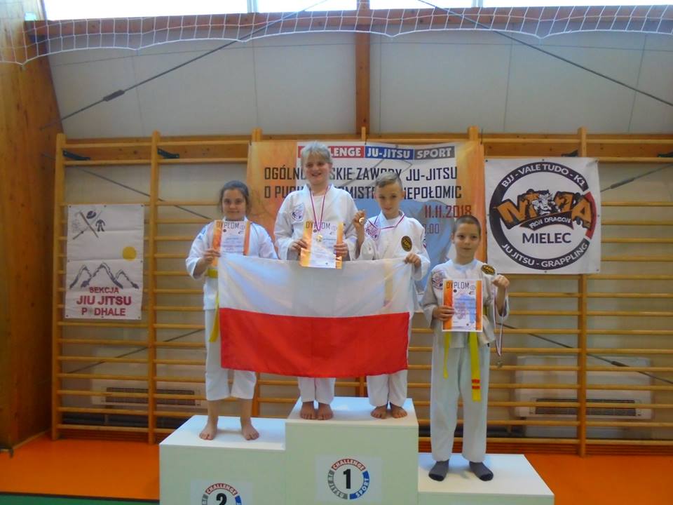 "W 100-lecie Odzyskania przez Polskę Niepodległości reprezentacja Sekcji Jiu Jitsu Podhale działającej m.in. przy Gminnym Ośrodku Kultury w Poroninie wzięła udział w Ogólnopolskich Zawodach Ju-Jitsu o Puchar Burmistrza Niepołomic. Zawody odbyły się w formule Ju-Jitsu, w której punktowano rzuty, obalenia i trzymania w parterze. Zawodnicy sekcji zdobyli razem 4 medale w tym 3 srebrne i 1 brązowy. Była możliwość konfrontacji np. z zawodnikami Sambo (rosyjskie jiu jitsu), co pozwala rzetelnie ocenić umiejętności zawodników sekcji. Wskazuje to też, co należy poprawić w toku szkolenia. Świetna oprawa, organizacja, atmosfera i współzawodnictwo fair play pozwoliły na swój sposób świętować. Nie brakło pięknych chwil patriotycznych (odśpiewanie hymnu, wyeksponowanie flag państwa). Zawodników dopingowali kibice w tym rodzice. Na zawodach był również prezes CJJIF na Polskę Sławomir Zięba (organizacja do której sekcja należy). W skład reprezentacji weszli Aleksandra Mikowska, Julia Stasik, Bartosz Łukaszczyk oraz Szymon Floryn."