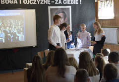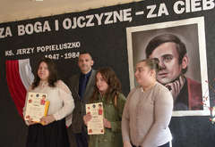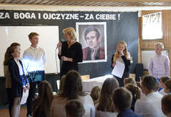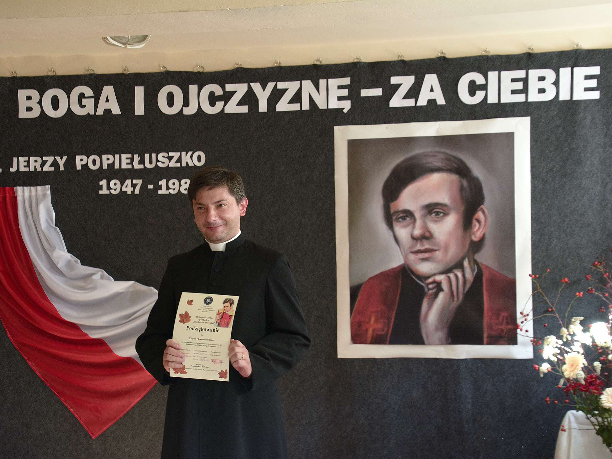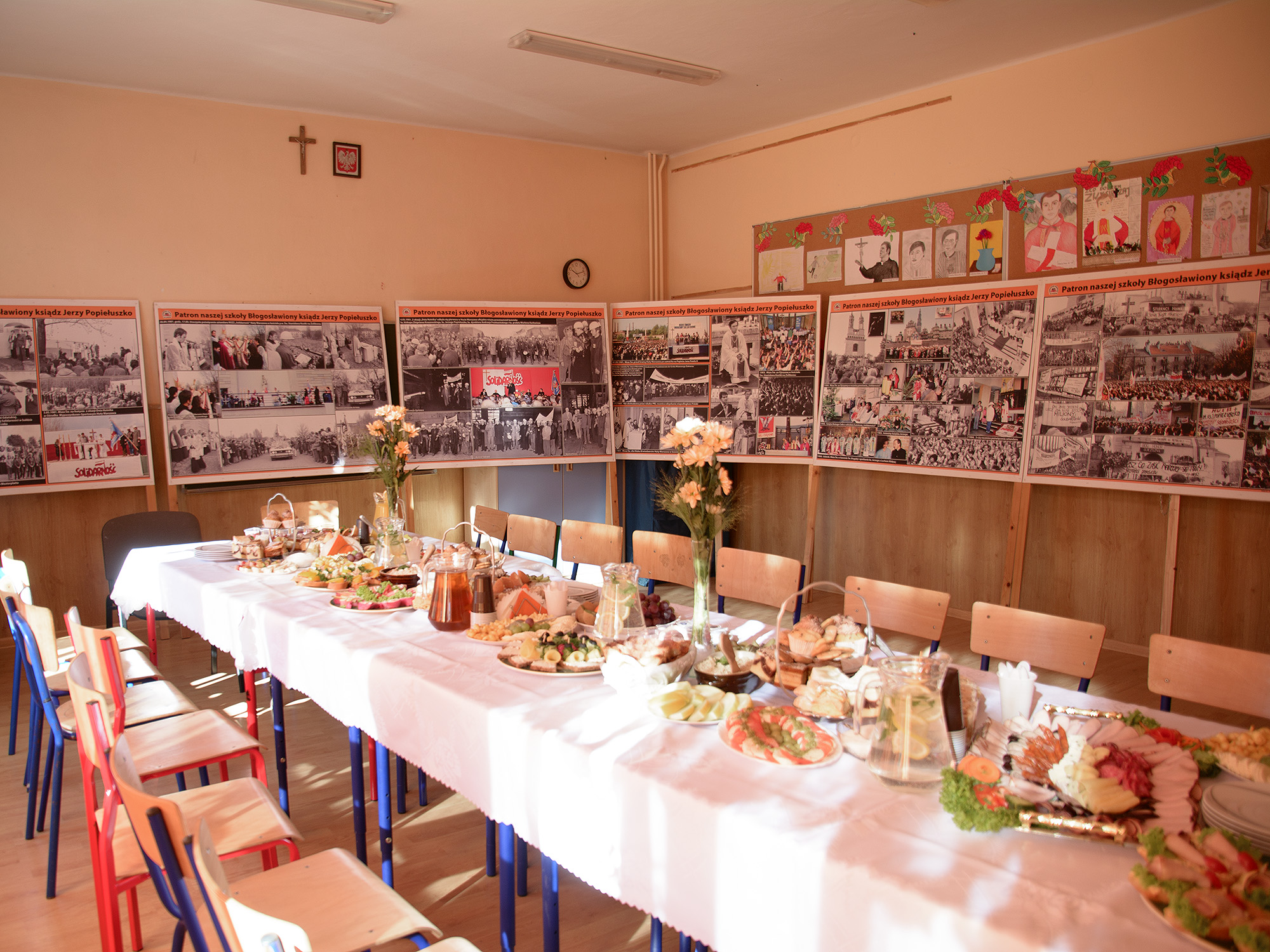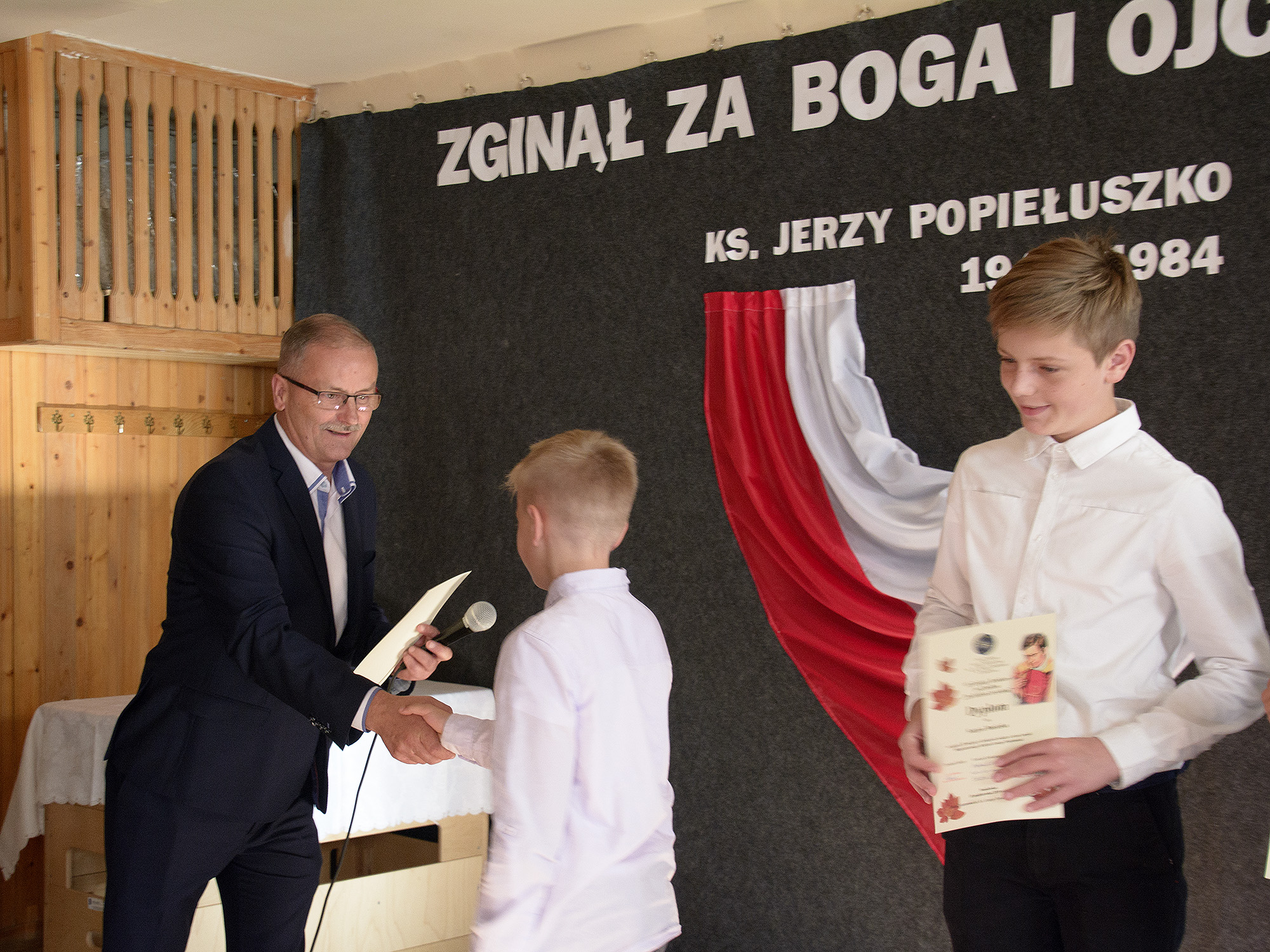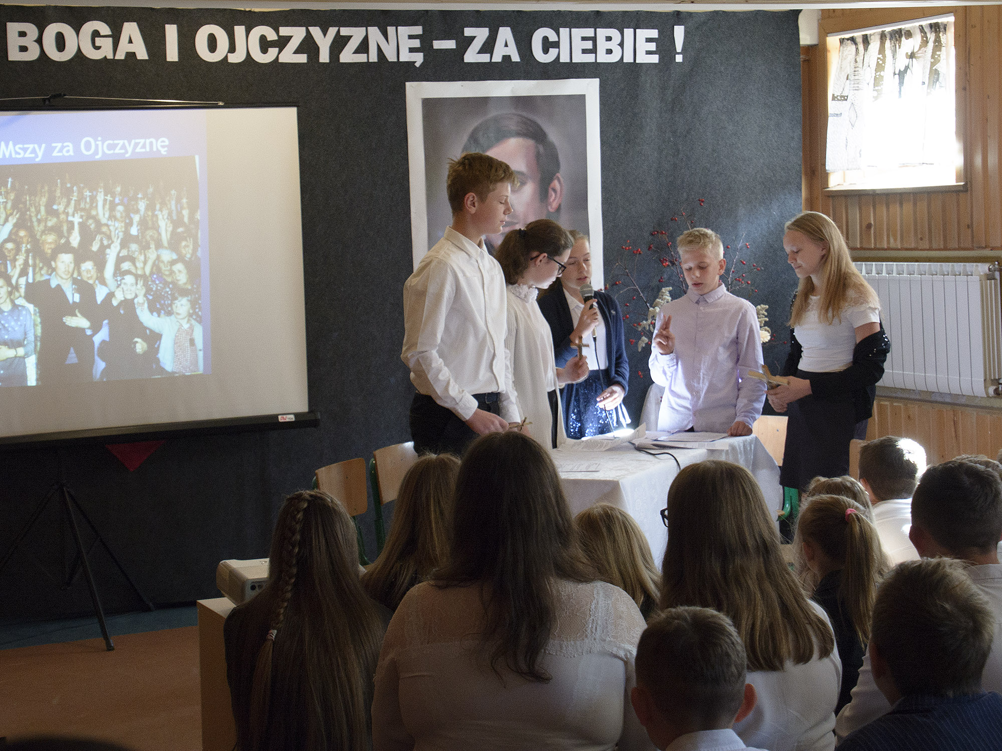 Święto Patrona to szczególny dzień w życiu szkolnej społeczności. Jego wyjątkowy charakter, podkreślili swoją obecnością przedstawiciele władz Gminy Poronin – pani Wójt Anita Żegleń , Przewodniczący Rady pan Adam Pawlikowski, Sekretarz Gminy pani Maria Budz oraz Dyrektor Centrum Usług Wspólnych pani Beata Chałupka. Życzyli oni Dyrekcji, Gronu Pedagogicznemu i Rodzicom, aby duch Patrona wpisał się w program wychowawczy Szkoły. Uczniom zaś, aby wartości, którym był wierny ks. Popiełuszko pozostały dla nich drogowskazem.