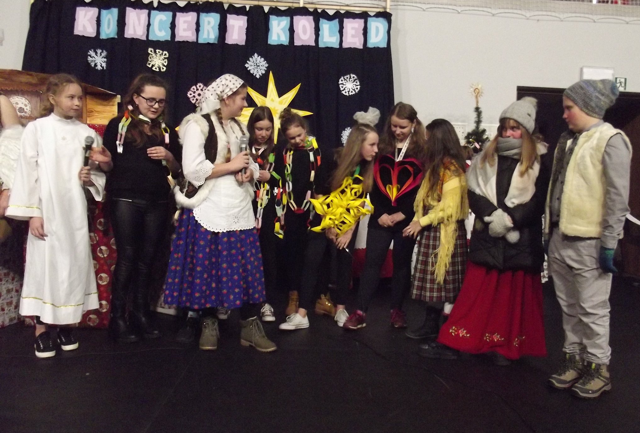 Sympatyczne spotkanie rozpoczął występ jasełkowy uczniów należących do koła plastyczno- teatralnego. Następnie, każda klasa zaprezentowała swoje umiejętności wokalne, śpiewając przygotowaną kolędę lub pastorałkę.