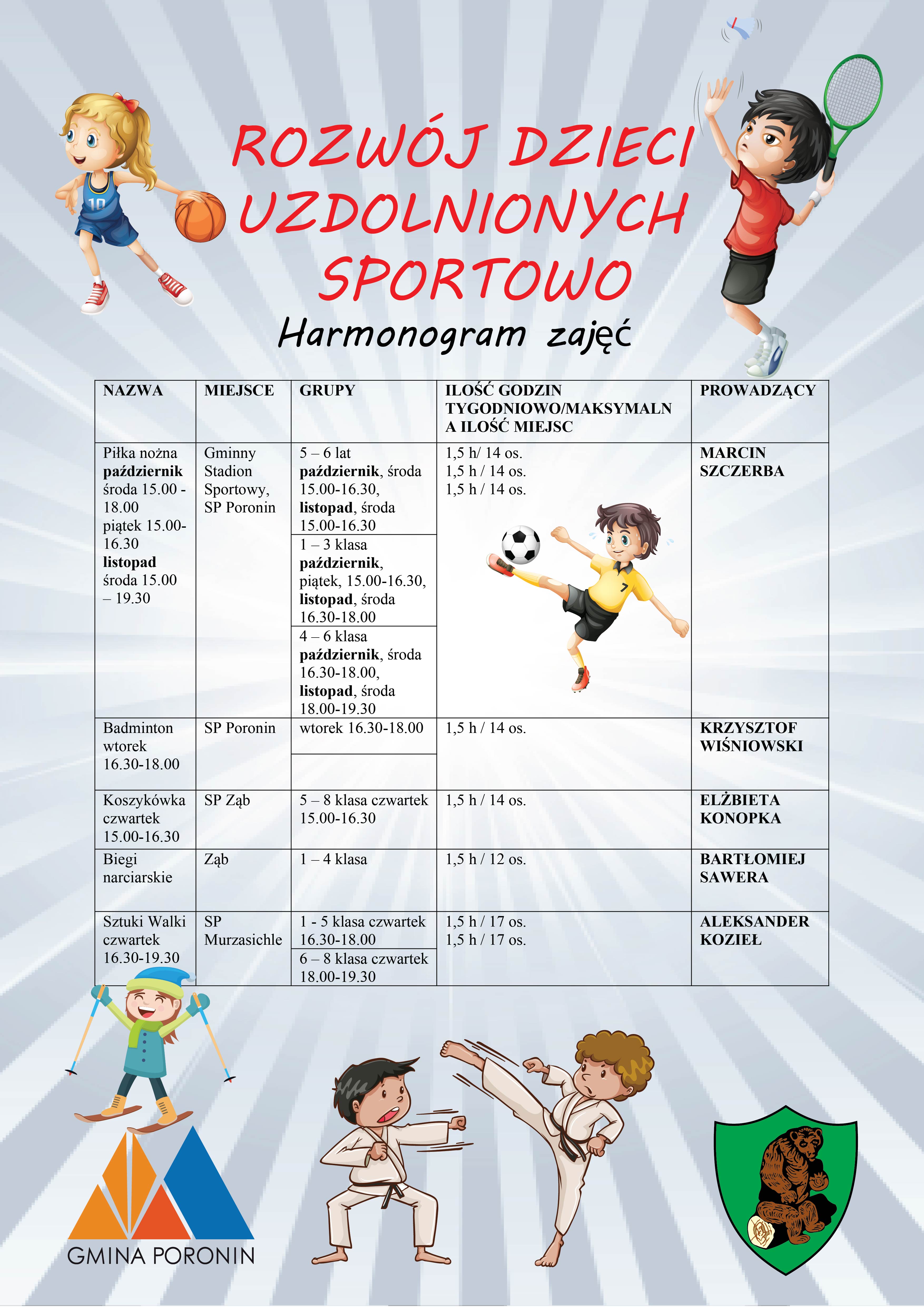 Już od dzisiaj w naszej Gminie ruszają zajęcia dla dzieci uzdolnionych sportowo. Zgodnie z harmonogramem w dniu dzisiejszym odbędą się zajęcia ze sztuk walki. Natomiast koszykówka rozpocznie się wyjątkowo w przyszłym tygodniu.