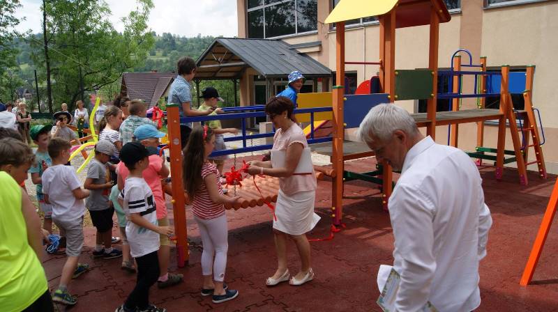 Wymarzony plac zabaw został uroczyście otwarty na festynie rodzinnym. Wstążeczki przecięli: pan Andrzej Buńda - wicewójt Gminy Poronin, pani Dyrektor Zofia Chowaniec, pani Barbara Polak - pełnomocnik ds. Profilaktyki i Rozwiązywania Problemów Alkoholowych w naszej gminie, Mateusz Sroka z klasy G II a (klasy szczególnie zaangażowanej w powstawanie placu), uczniowie klas najmłodszych. Bardzo się cieszymy.
