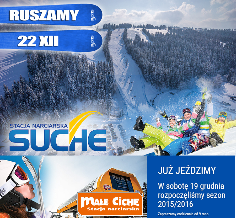 Śniegu jak na lekarstwo, za oknami słońce, jednak stacje narciarskie w Naszej Gminie już ruszyły. W miniony weekend wystartowała stacja w Małem Cichem a już od wczoraj można szusować w Suchem.
