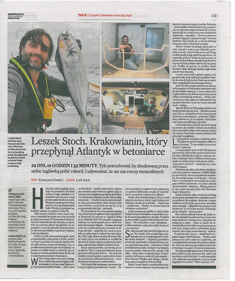 Jak słyszymy Stoch z Zębu to zwykle kojarzy się nam z Kamilem i skokami, a nie z oceanem.... Dlaczego z oceanem? Mamy też innego znanego Stocha z Zębu. To Leszek Stoch obecnie mieszkający w Krakowie. Przepłynął Atlantyk w 29 dni, 10 godzin i 33 minuty. Tyle potrzebował, by zbudowaną przez siebie żaglówką pobić rekord! Gratulujemy!