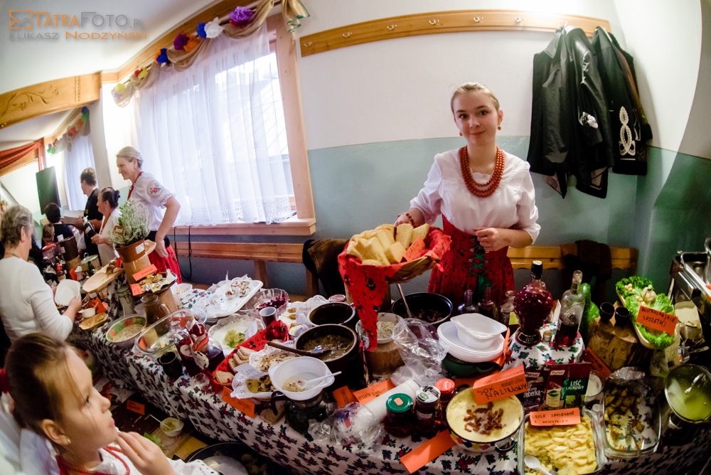 Poronin – 65 potraw, 9 nalewek i 13 ciast, ciasteczka owsiane z miodem, największa ilość potraw z kaszy, kapusta wigilijna, nalewka zdrowotna - gorczyca,