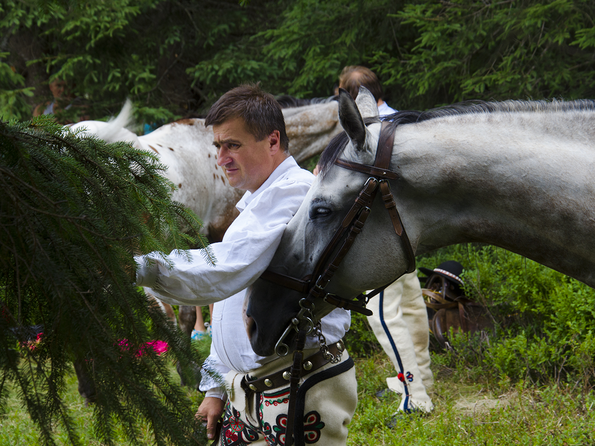 Na polanie nie zabrakło gazdów na koniach, bo jak wiemy koń zawsze był związany z życiem i pracą górali podhalańskich.