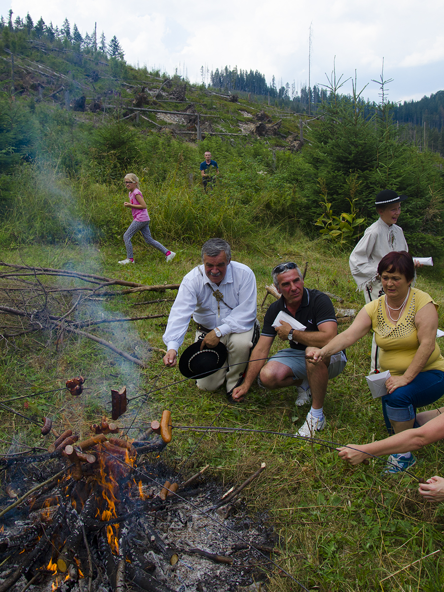 Po mszy polana odżyła na nowo, był śpiew, muzyka i tańce góralskie. Zapłonęła też góralska watra. Nie zabrakło tradycyjnych pasterskich produktów produkowanych w Tatrach - były oscypki, ser, zyntyca.