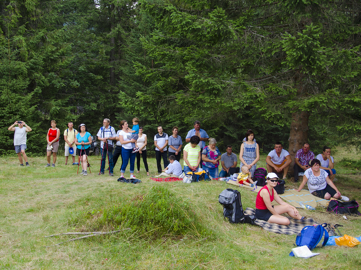 Tegoroczne spotkanie jak co roku rozpoczęło się już w Suchem - skąd wozami, ze śpiewem góralskim Suchowianie wyjechali na uroczystości jubileuszowe. Na wzór lat ubiegłych na Polanie Olczyskiej odprawiona została polowa msza święta w oprawie góralskiej Związku Podhalan i Zespołu Góralskiego „Harnasie” z Suchego. Mszę świętą celebrował Ks. Marcin Dąbkowicz OP – „gazda” od Królowej Tatr – Matki Boskiej Jaworzyńskiej z Wiktorówek.