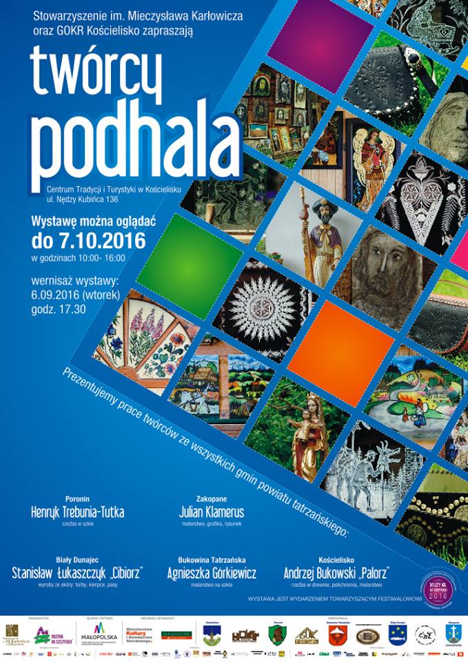 Na wystawie Twórcy Podhala zaprezentowany zostanie dorobek artystyczny wybranych twórców z każdej gminy powiatu tatrzańskiego: Andrzeja Bukowskiego „Palorza” z Kościeliska (rzeźba w drewnie, polichromia, malarstwo), Agnieszki Górkiewicz z Bukowiny Tatrzańskiej (malarstwo na szkle), Henryka Trebuni-Tutki (rzeźba w szkle), Stanisława Łukaszczyka „Cibiorza” z Białego Dunajca (wyroby ze skóry, torby, kierpce, pasy) i Juliana Klamerusa z Zakopanego (malarstwo, grafika, rysunek).
