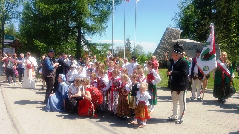 Już po raz dwudziesty 3 czerwca 2017 r. przeszła Jubileuszowa Piesza Pielgrzymka Sursum Corda z Zakopanego do Ludźmierza. Jak co roku, przy Obelisku Papieskim w Zębie w administracyjnych granicach gminy Poronin pielgrzymów powitał pięknym śpiewem zespół regionalny Mały Zbójnicek wraz z Wójtem Gminy i delegacjami sztandarowymi.