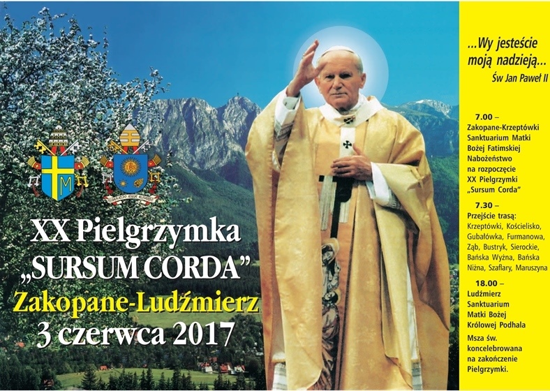 XX Piesza Pielgrzymka „Sursum corda ” Zakopane - Ludźmierz 3 czerwca 2017 r. sobota - "Wy jesteście moją nadzieją!…" św. Jan Paweł II