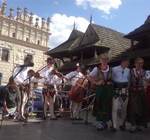 Wspólnie zespoły te wystąpiły na Rynku w Kazimierzu Dolnym w ramach imprezy "Spotkanie z folklorem".